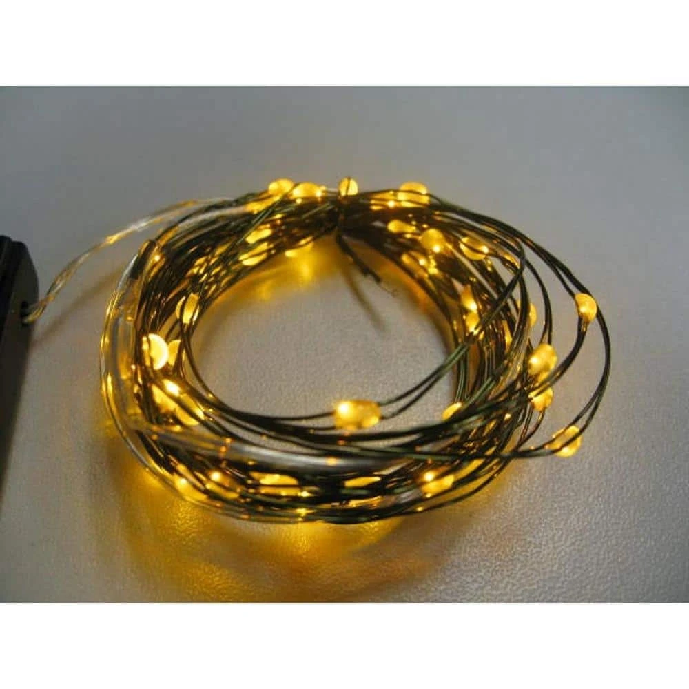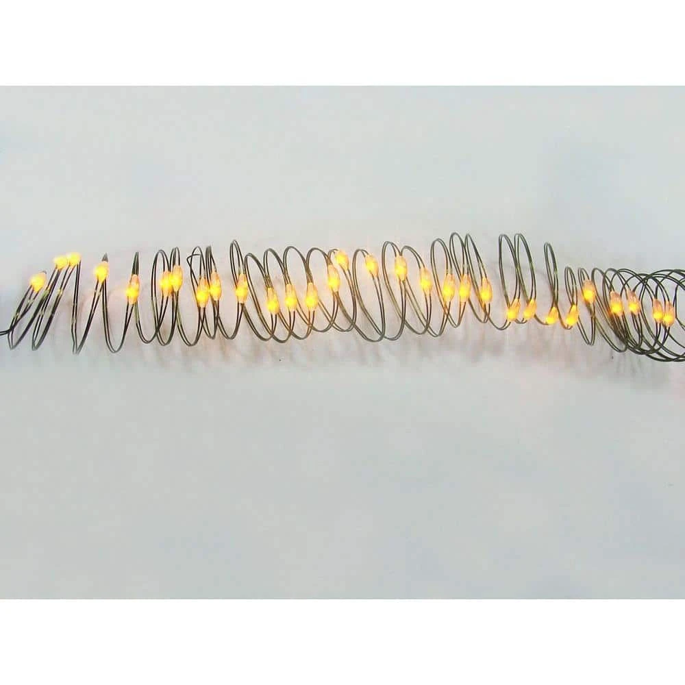 The 36-Light LED Ultra-Slim Wire Light Sets Gold (2-Pack) feature 36 gold LED lights mounted onto a slim 9 ft. long wire for a striking 360° view of each bulb. The light sets include control boxes that allow you to put the lights on a timer or switch them to phasing or flashing modes for a bold holiday display.