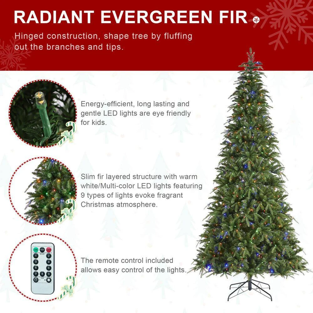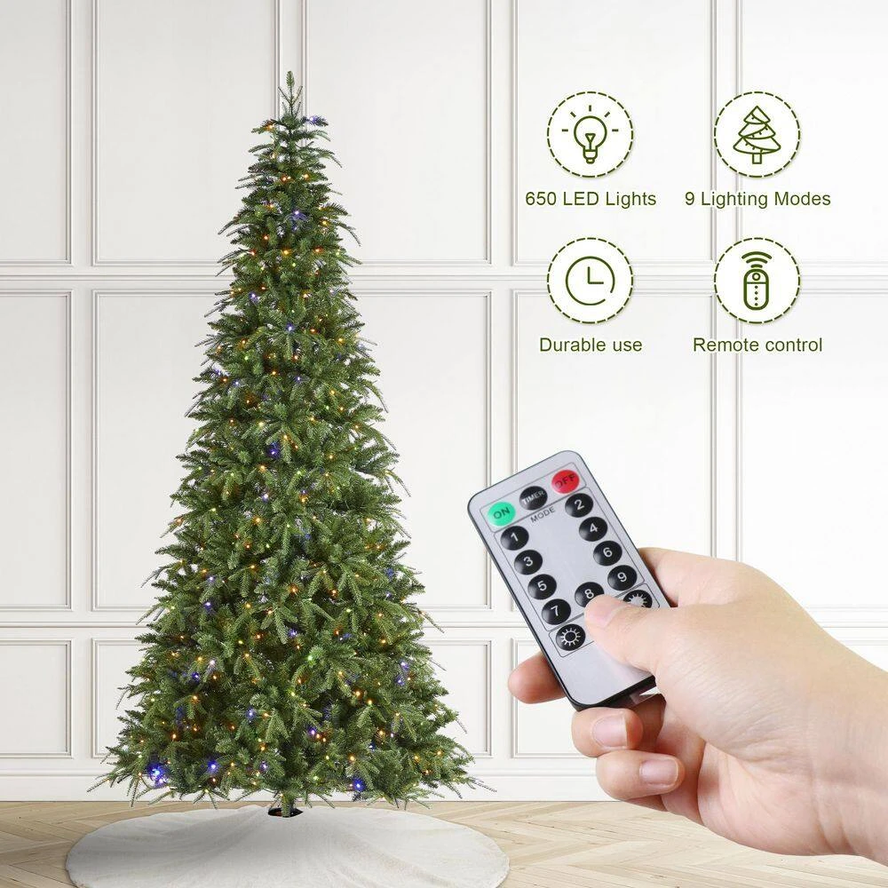- Slim fir layered structure and warm white/multi-color LED lights, featuring 9 modes of lighting to evoke a fragrant Christmas atmosphere