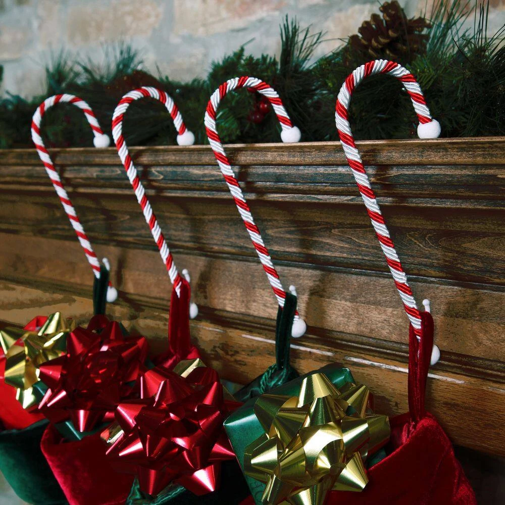 The Candy Cane stocking holder (4-Pack) set is a unique and simple way to hang stockings. It’s light-weight yet can hold a full stocking without falling off the mantel, making it a more kid friendly product compared to heavy, counter-balance stocking holders. These holders fit most mantel shapes and sizes and can also be used on counter tops, tables and a variety of other surfaces around your home.