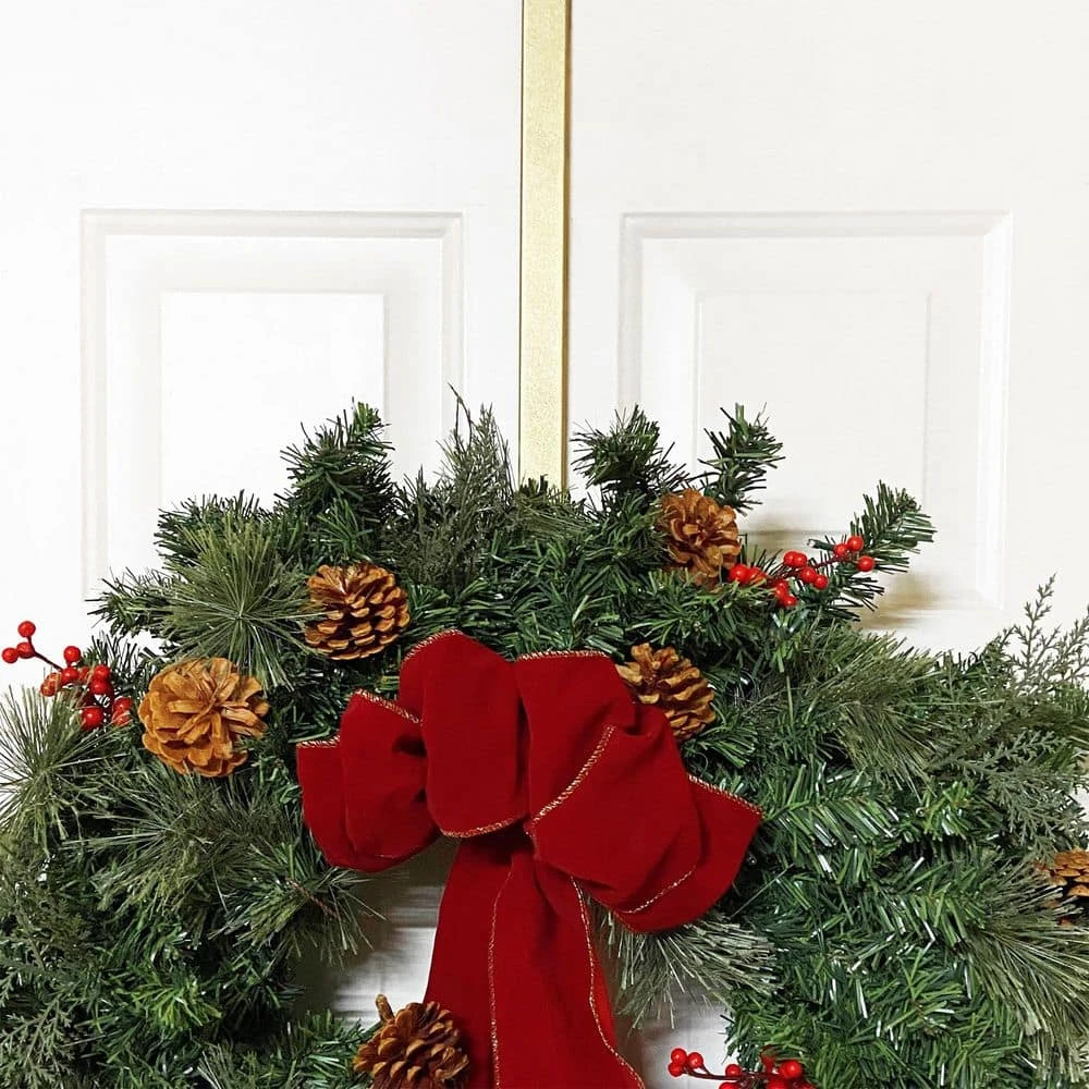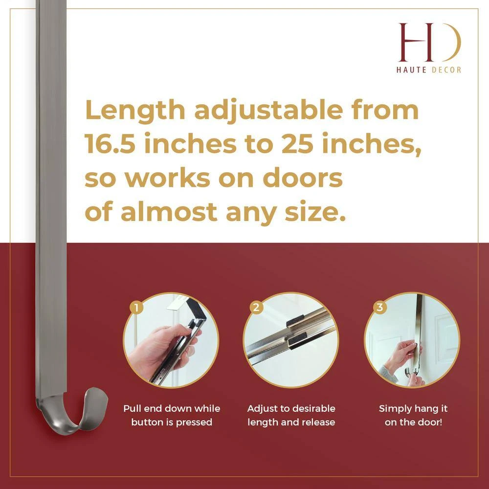 - Adjustable over-the-door wreath hanger with soft pads to protect doors from scratches