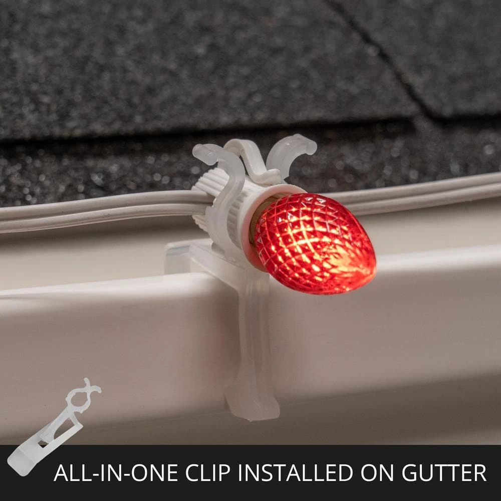 - Pack of 100 all-in-1 Christmas light clips for mounting C9, C7 or mini lights onto gutters or under shingles