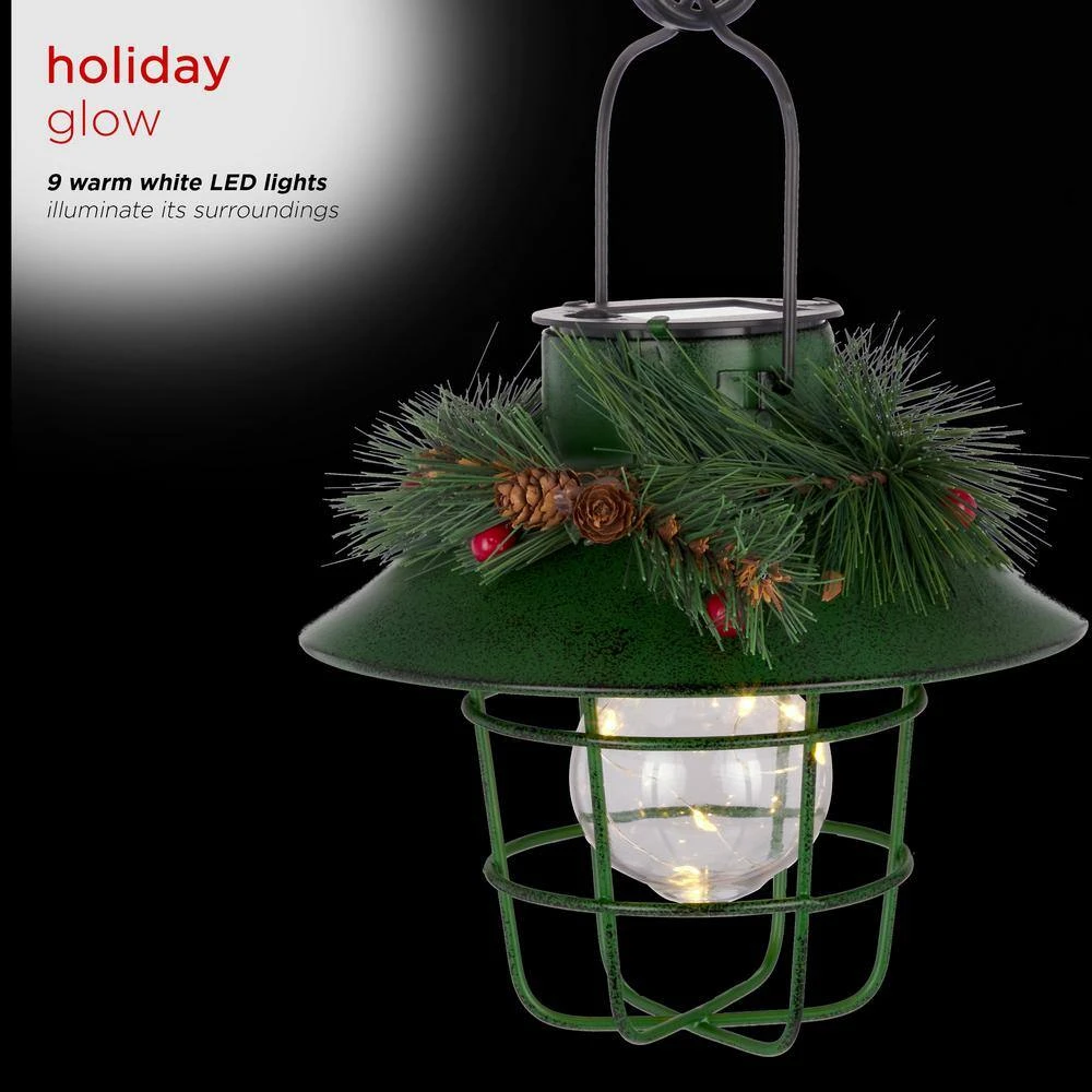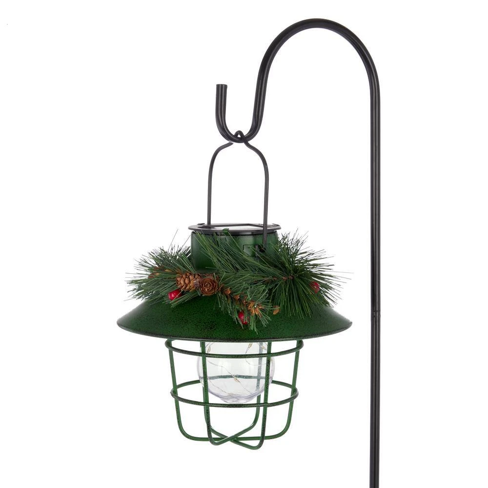 - Vintage-style holiday lantern: stylistic green lantern with holiday greenery accent and included shepherd’s hook
