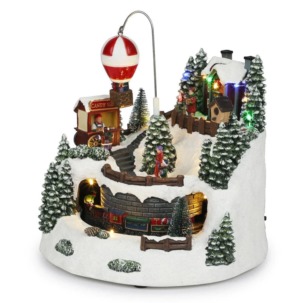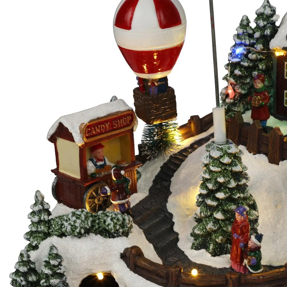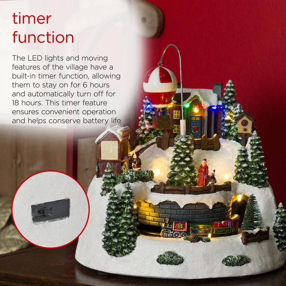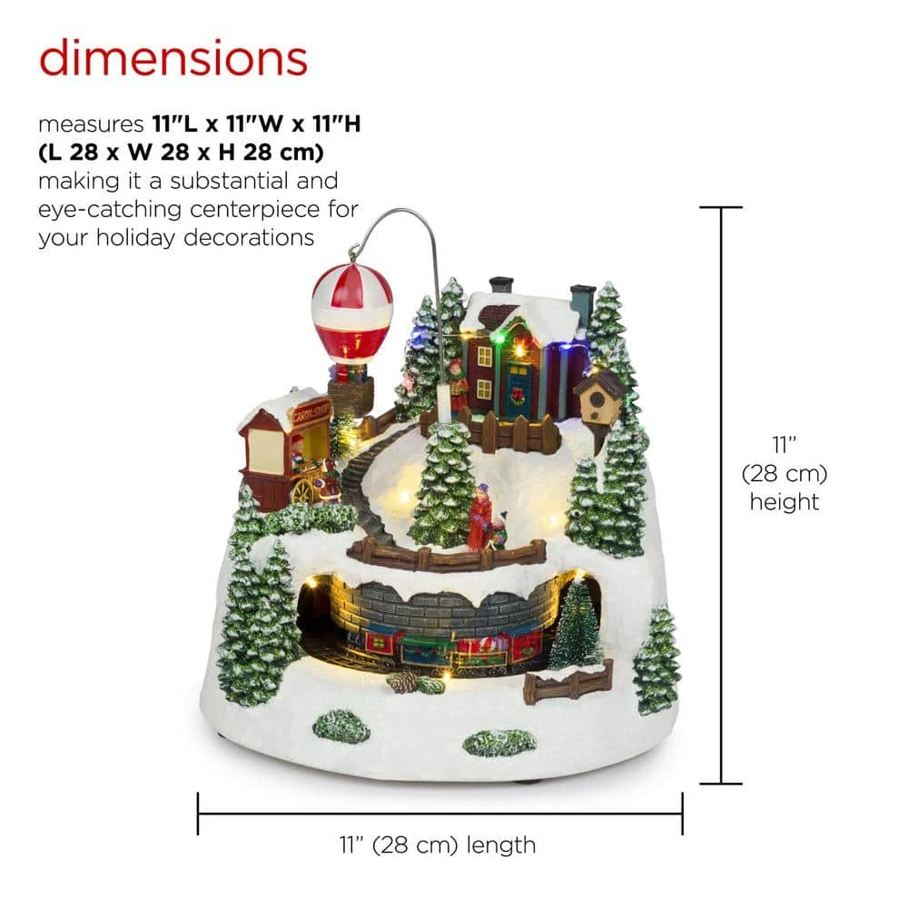 - Dimensions: the animated christmas village with train, hot air balloon and LED measures approximately 11 in. L x 11 in. W x 11 in. H, making it a substantial and eye-catching centerpiece for your holiday decorations