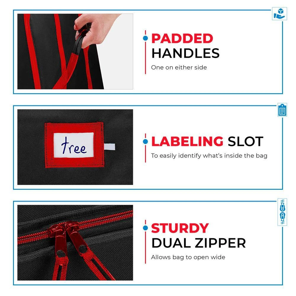 Nothing enhances the living room like a freshly-bought brand-new tree and we want nothing more than keeping it that way for many seasons to come. The only way to achieve that is by keeping it protected in storage amongst the dust-mites, bugs and mold. In that case, you have come to the right place. Bag is of waterproof material for insurance against water damage, 2-way tightly-zipped dual zipper opens completely wide and prohibits any type of basement residents from invading your x-mas tree. and about the transference between storage and living room, bag is equipped with stitch-reinforced carry handles and side handles for added accessibility. Name the type of tree in the designated card slot. and for a little extra dazzle to the holidays, bag comes in a couple of bright, festive, holiday colors. with all these handy and practical features, packing and unpacking trees are now easier than ever.