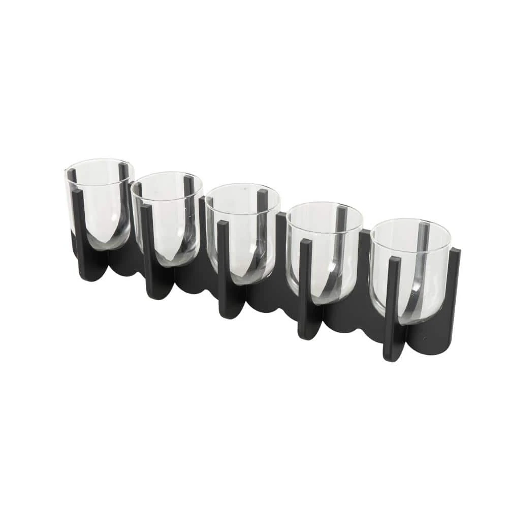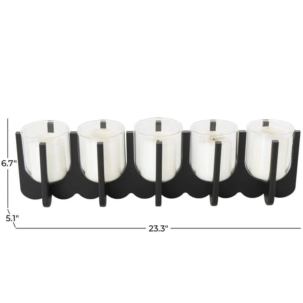 - Matte black candle holders for centerpiece have an intriguing rectangular shape with five slots that adds a contemporary touch to any space