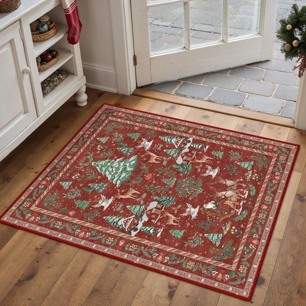 Christmas 2 Ft. X 3 Ft. Red/Green Elk Snowman Christmas Tree Area Rug