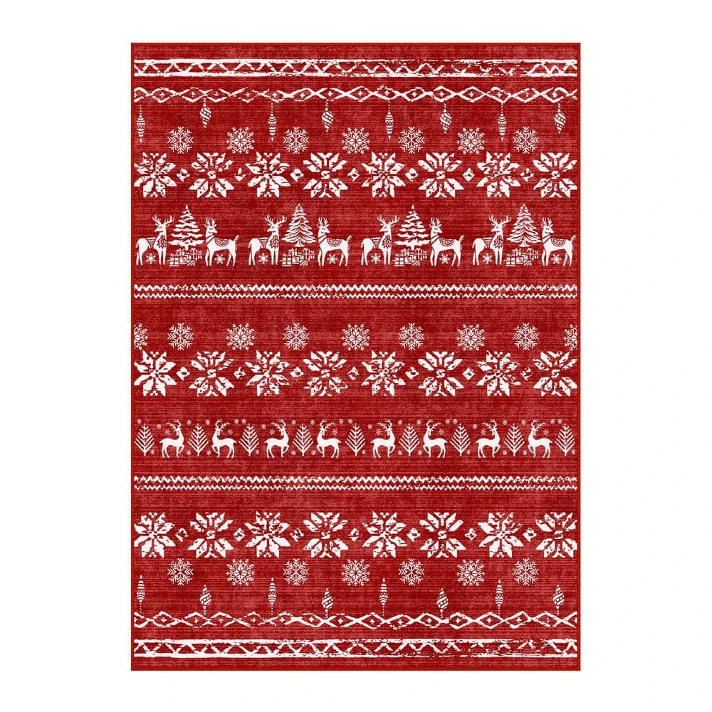 HaiiMeid area rug brings festive cheer to your home with its vibrant Christmas design featuring Santa Claus, reindeer, snowmen, Christmas trees and snowflakes in classic red hues. The innovative 50G dotted sponge backing provides superior cushioning comfort underfoot while offering exceptional slip resistance – with better crease recovery than traditional TPR bases. Crafted with stain-resistant, easy-to-clean materials that stand up to pet traffic, this holiday rug combines joyful seasonal style with practical durability for your entryway or living space.