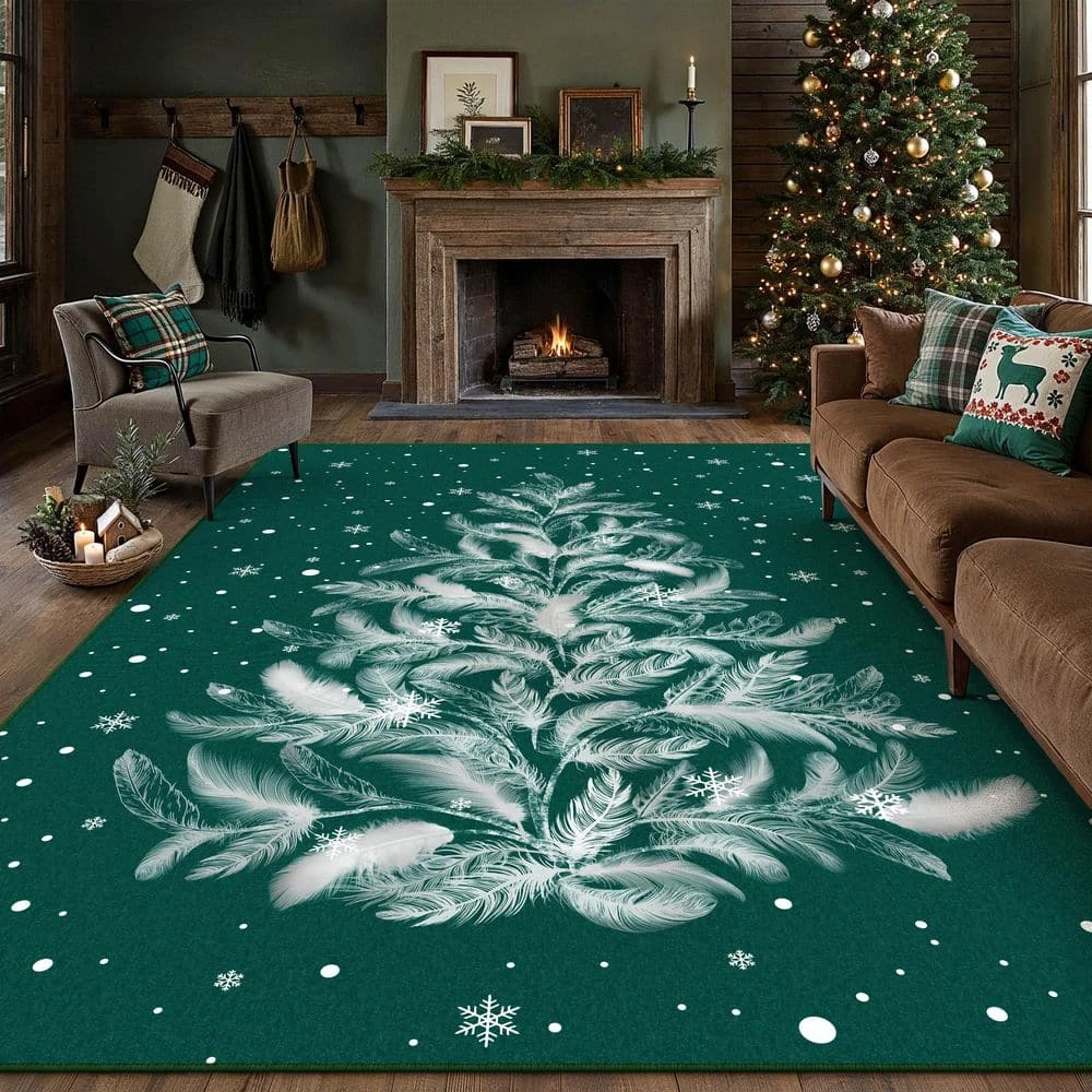 HaiiMeid area rug elevates holiday decorating with its artistic feather-composed Christmas tree design in rich green tones, where hundreds of delicate feather motifs create a stunning 3D effect that brings magical winter charm to any room. The premium 50G dotted sponge backing offers cloud-like softness underfoot with unbeatable slip resistance, outperforming ordinary TPR bases with remarkable crease recovery that keeps your floors looking neat all season long. Designed for real-life celebrations, this emerald-hued rug features a stain-proof surface that cleans with a simple wipe and durable construction that stands up to playful pets, making it the perfect blend of festive elegance and worry-free functionality for your holiday gatherings.
