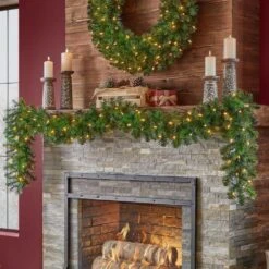 Home Accents Holiday 9 Ft. Wesley Long Needle Pine LED Pre-Lit Artificial Christmas Garland