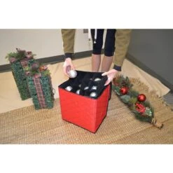 Premium Quilted Red Polyester Ornament Storage Box (48-Ornaments)