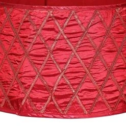 New Traditions 26 In Red Satin Christmas Tree Collar With Red Glitter Lattice Pattern
