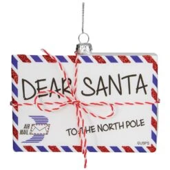 Northlight Envelope USPS “Dear Santa” With Stripes Glass Christmas Ornament-3.5 In. Red