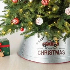 26 In. D Galvanized Merry Christmas Cutout Metal Tree Collar With Light String (KD)