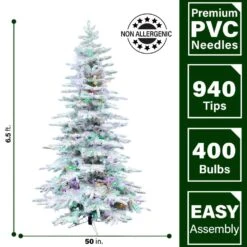 7 Ft. Pre-Lit Snow-Flocked Full Artificial Christmas Tree With Sturdy Metal Stand