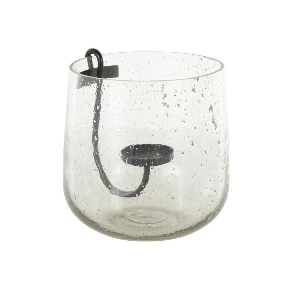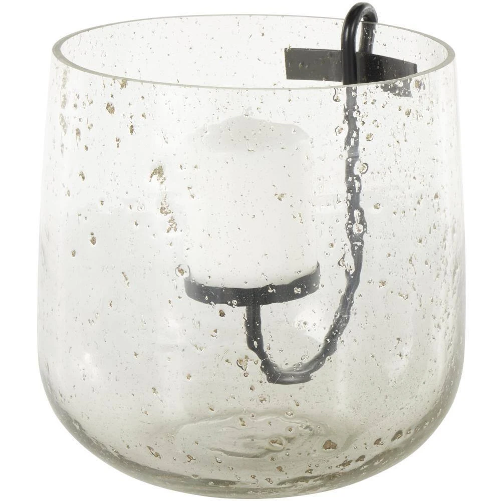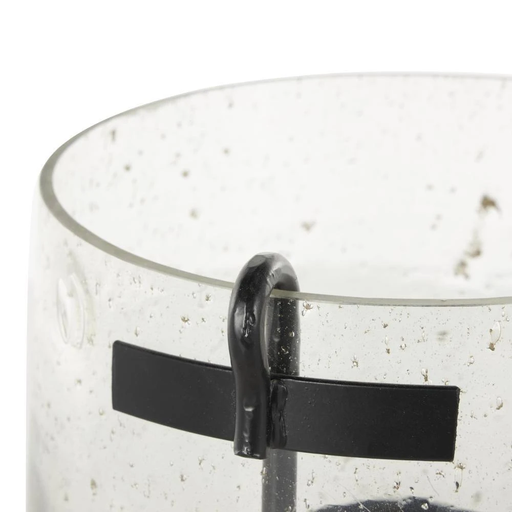 - Glass candle holder has unique features including an elegant black metal base for stability and brown speckles that add to its visual appeal