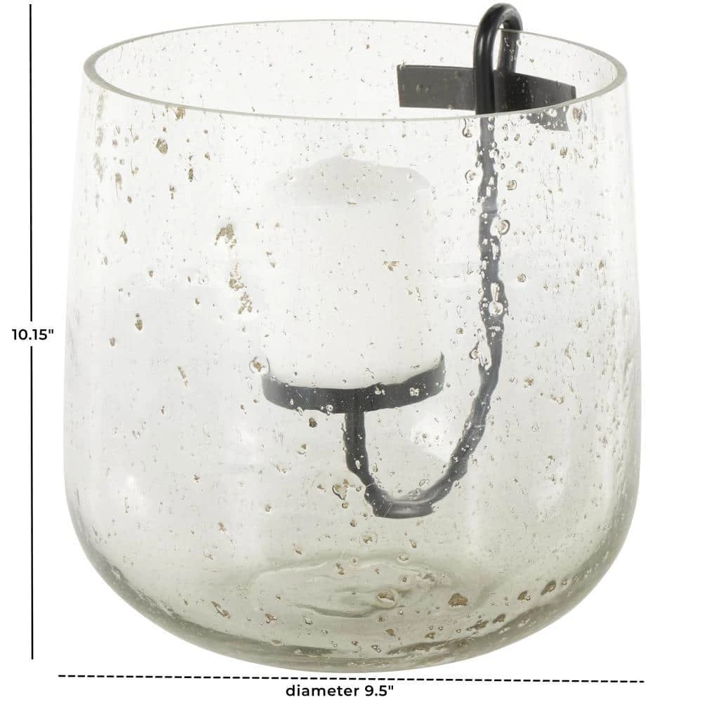 - Clear glass candle holder measures 9 L x 9.5 W x 10.15 H in. and weighs 6.15 lbs.