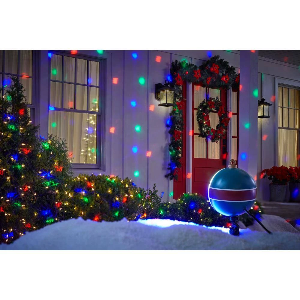- Projects a grand mosaic of moving holiday icons onto any wall or flat surface