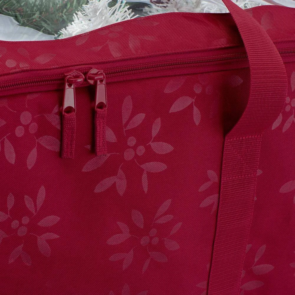 - HEAVY-DUTY HOLIDAY STORAGE: Festive cranberry debossed polyester fabric features a winter-berry motif and a laminated crimson lining
