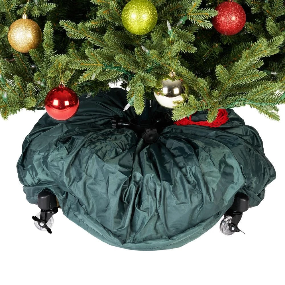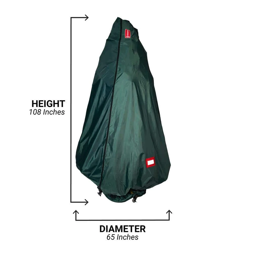 We understand your frustration with your artificial Christmas tree. Each year, set up and take down of your tree tests your patience as you assemble each section, try to find the plugs to make all the lights work, and move the ornaments around to try and get the same perfect look that you remember from last year. You force a large tree into a cardboard box that is too small to fit your Christmas tree, and break your back carrying the box in and out of storage. This repeated assembly and disassembly, along with that taped together cardboard box, shortens the lifespan of your Christmas tree. The good news is that it doesn’t have to be this difficult or time consuming. The upright decorated Christmas tree storage bag is the perfect artificial Christmas tree storage bag with wheels for fully assembled and decorated trees up to 9ft. tall. Vertical storage for xmas trees allows you to keep your tree assembled and decorated the perfect way, cutting away your set up and take down time. With the included rolling tree stand, set up and take down becomes as simple as rolling your xmas tree container in and out of storage, and suddenly the task you once hated becomes a whole lot easier. Next year, when set up your tree, simply bunch the xmas tree bag up at the base of your tree, securing it in the attached tree skirt, and your xmas tree storage bags will be discreetly hidden from sight as if it weren’t even on the tree to begin with. A Patented Product: Patent(s) 7,694,494 and 7,775,360