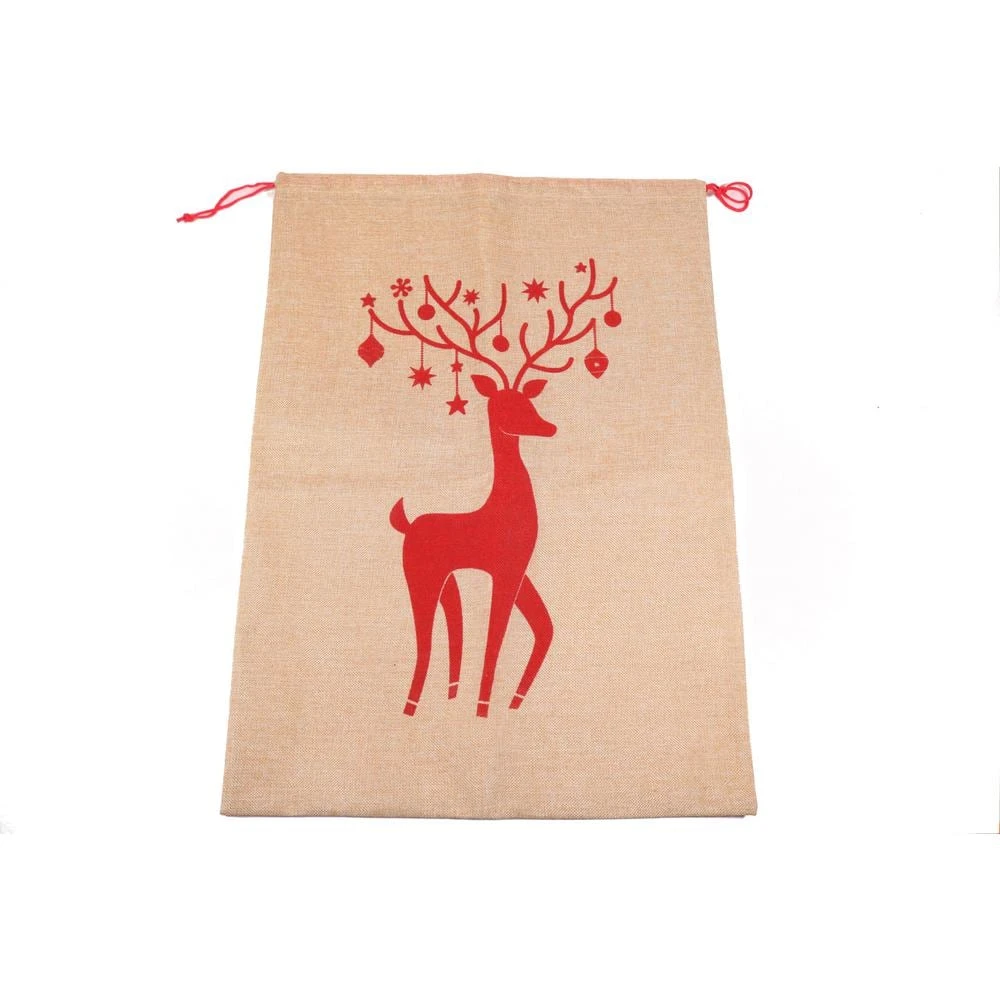 Santaland’s giant burlap Holiday gift sack with printed reindeer decoration. Can be used for gift wrapping large items or as a decorative holiday gift bag. Can be used as a decorative item as well.
