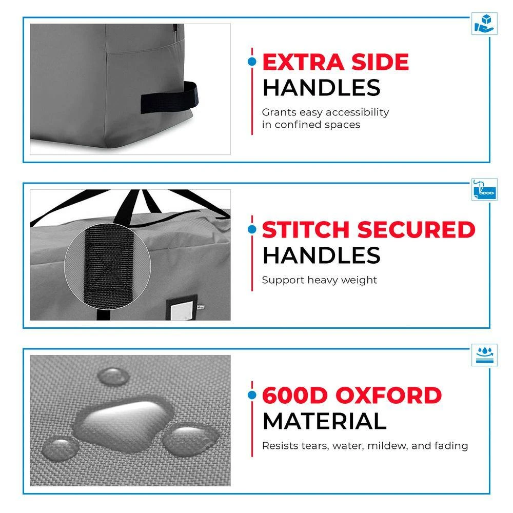 - Storage insurance- bag is constructed of 600 denier oxford fabric, of waterproof and tear proof material, to last through many happy holidays, through the dragging up and down between storage and living room, bag and its contents will remain in its prestige condition for a long time