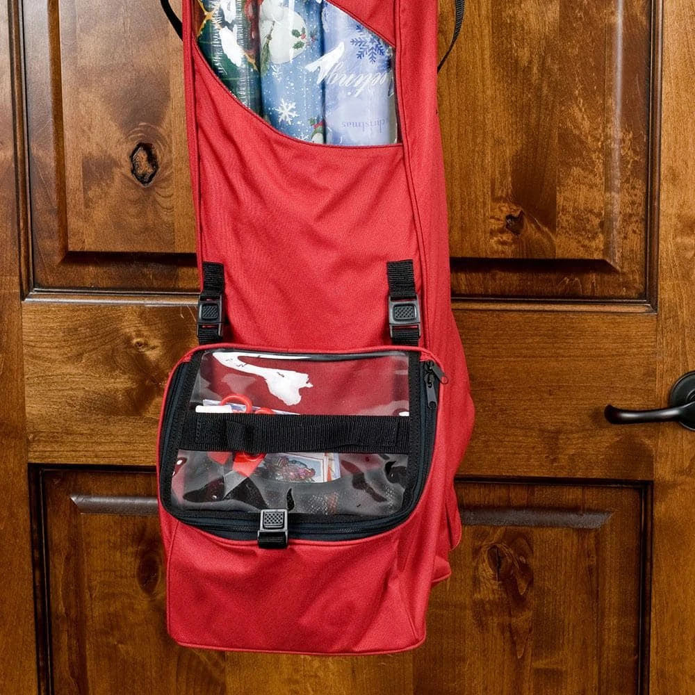 After Christmas time you often wonder what to do with all your remaining wrapping paper, as the tall rolls do not fit in most drawers or storage containers. Keeping the rolls together, safe from damage, and in a space-efficient location can be complicated. By next Christmas time your wrapping paper will be lost, damaged, or forgotten leading you to buy new paper again. This Hanging Wrapping Paper Storage Container eliminates the hassle of storage for wrapping paper rolls and the need to buy new paper every year. This durable gift wrap storage can fit approximately twelve 40 in. wrapping rolls and is easily carried with the reinforced carrying handles. The over the door wrapping paper storage can be discreetly hung out of the way on the back of a door. The clear windows will give you a quick view of what remaining Christmas or Birthday wrapping paper you have left. What’s present wrapping without some bows and ribbons? The Christmas wrapping paper holder comes with an easily removed and attached toolbox for gift wrap accessories such as tape, scissors, ribbons and other items. Save yourself the trouble of finding a discrete storage place to keep your wrapping paper rolls from damage. This Christmas wrapping paper storage bag will keep them safe and clean all year round saving you from the extra trip to buy new wrapping paper every year.