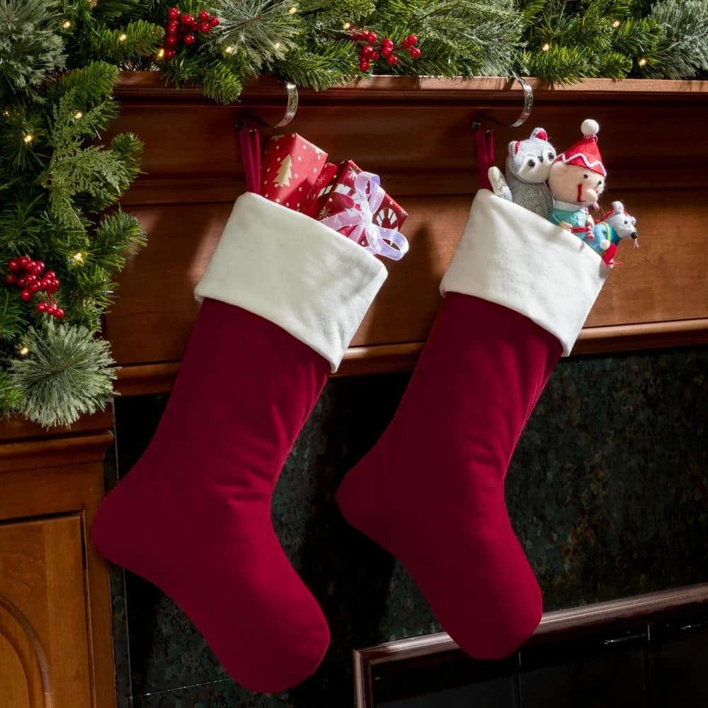- Classic red stocking is made with quality plush polyester with soft white trim on 1 side of the stocking