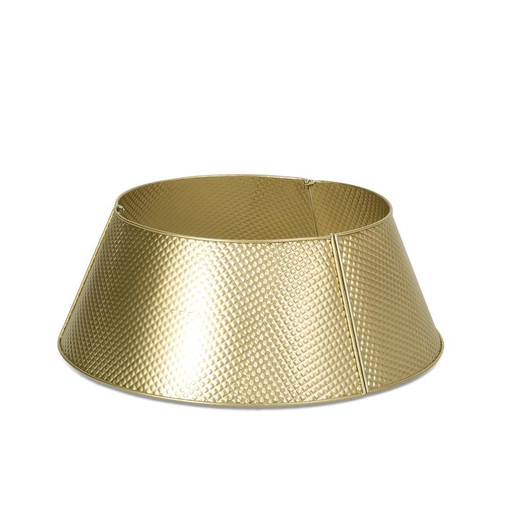 Bring your Christmas tree together this holiday season with the least amount of effort. Our tree collar features a stunning gold finish as well as an outstanding diamond-patterned texture, easily lifting your holiday spirits in an instant. With rustic charm and a simple design, this accessory collar will tie your Christmas decor together with a flourish. Whether you are framing your tree for a bit of oomph or covering up an unsightly tree base, our tree collar is the perfect accessory to bring some festive cheer.