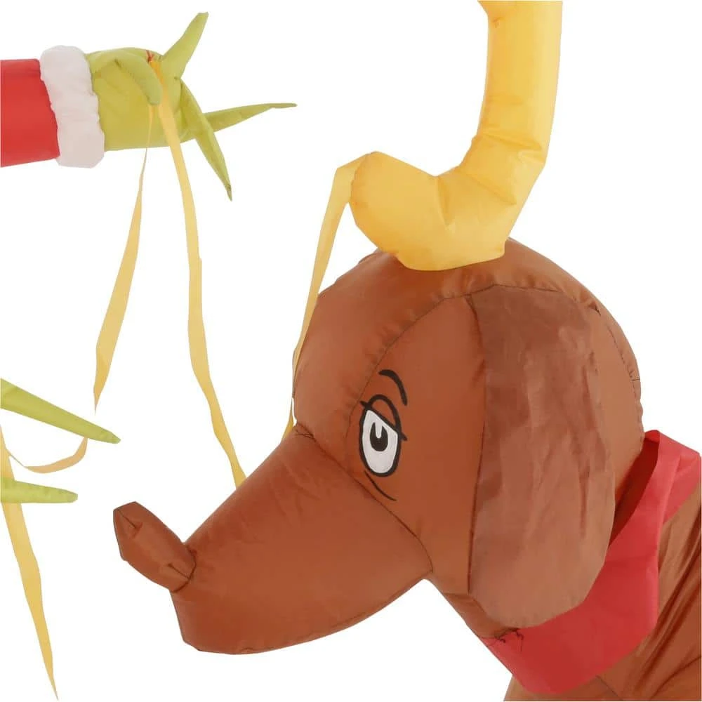 Add a fun and festive holiday touch to your yard with this Inflatable Ariblown Grinch and Max Scene. It shows the classic Christmas story of Whoveille, with the evil grinning Grinch plotting to steal Christmas while Max looks reluctantly on. This fun scene lights up for nighttime enjoyment and inflates automatically. Easily installs- plug it in, stake it down and watch the magic of this ariblown inflatable character unfold.