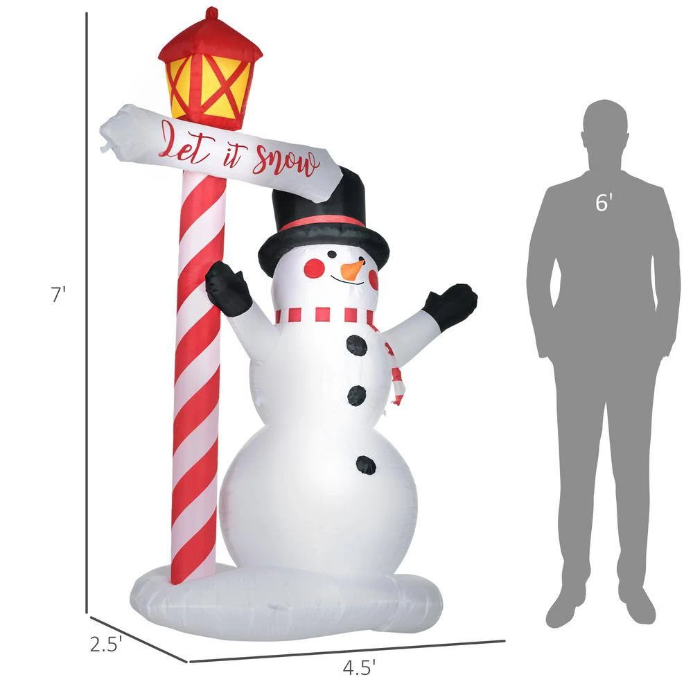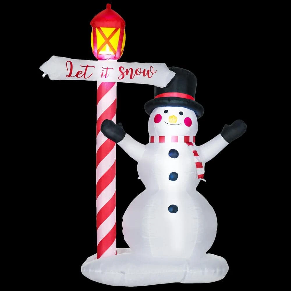 - Snowman with a street light inflatable brings a cohesive christmas display together