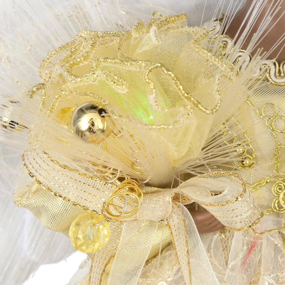 Holiday beauty is what you get from the 12 in. LED Angel Gold Tree Topper from Home Accents Holiday. Use it on your tree or tabletop. The fiber-optic wings and body and let light to pass through for an ethereal look. The gown is delicately crafted with great attention to detail and made of sheer gold shimmering fabric for eye-catching allure.