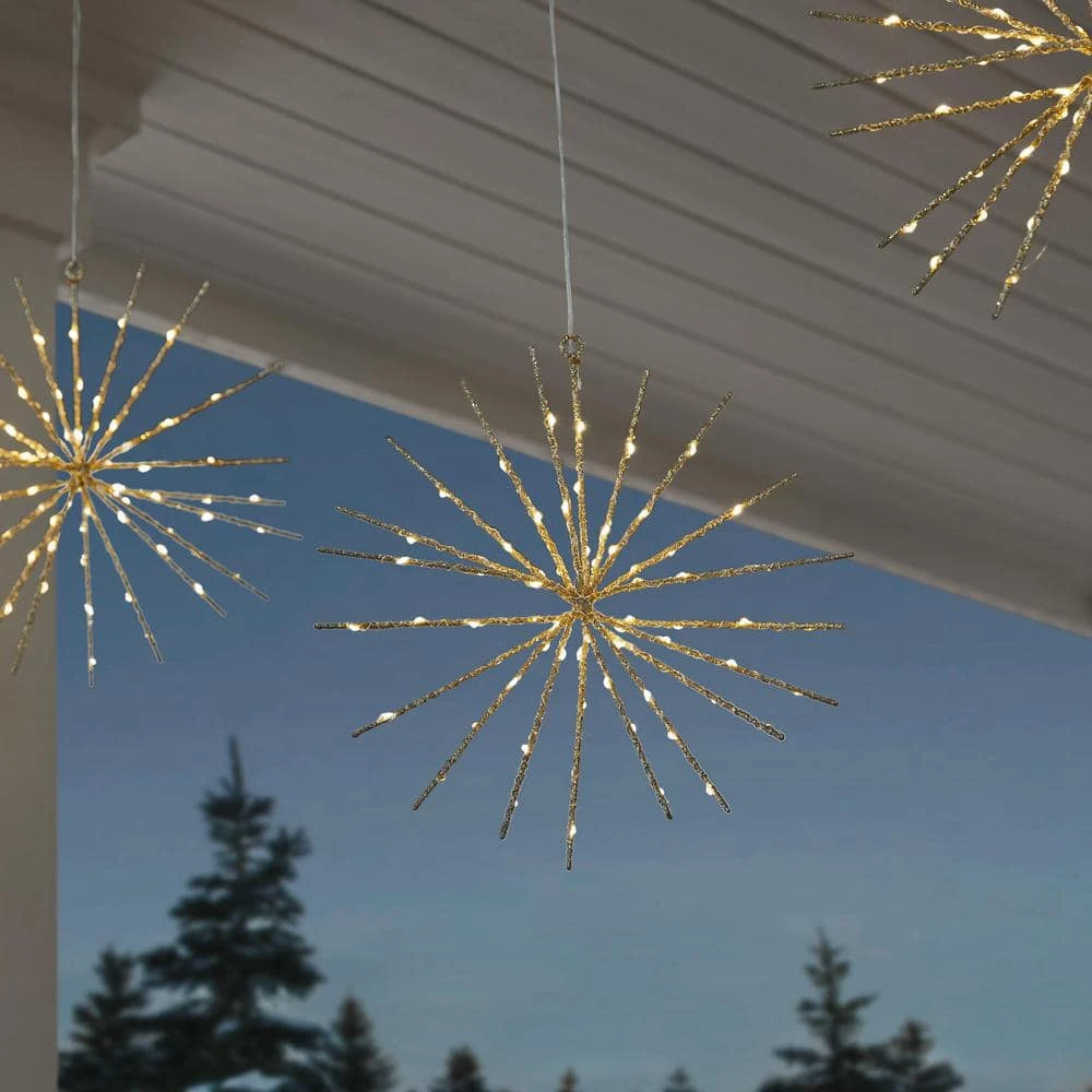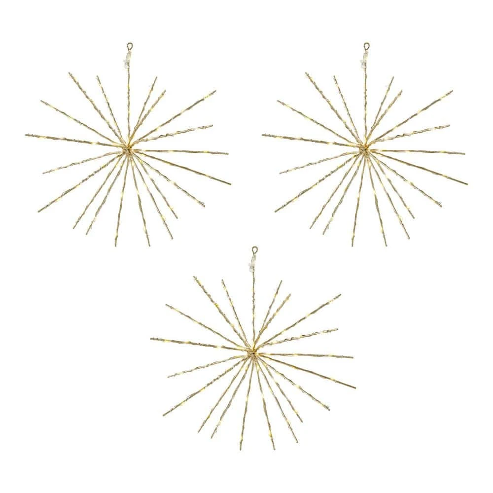 - 12 in. Battery Operated Twinkling LED Hanging Starburst Lights with Timer (3-Pack)
