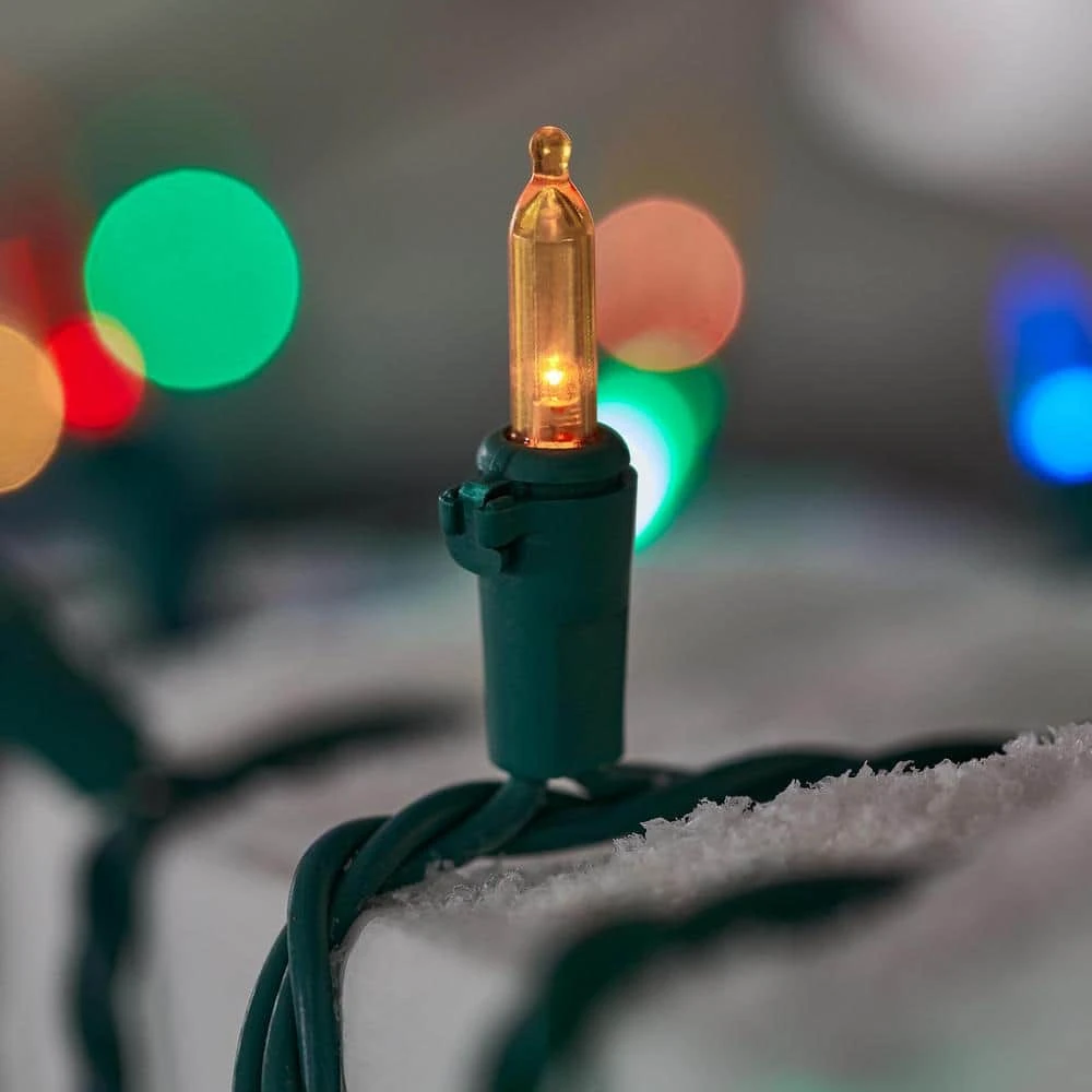 Create a dazzling display with these Home Accents Holiday 300 Count Multi-Colored Mini LED Lights. These LED lights are cool to touch when lit. There is 87 ft. 2 in. of lighted length to use along gutters, in trees, along fence or anywhere you want to create an outdoor light show. These lights can also be used indoors along railings or wall trimmings. For ideal tree lighting, use 100 lights for every 1 ft of tree. They connect up to 15 sets on one outlet for an even more dramatic display of light. These multi-colored mini LED lights are long lasting up to 25,000 hours (up to 15 holiday seasons). These mini lights have a green wire and include four spare bulbs and two fuses. These lights come with a 3 year warranty, so you’ll have a merry holiday season year after year.
