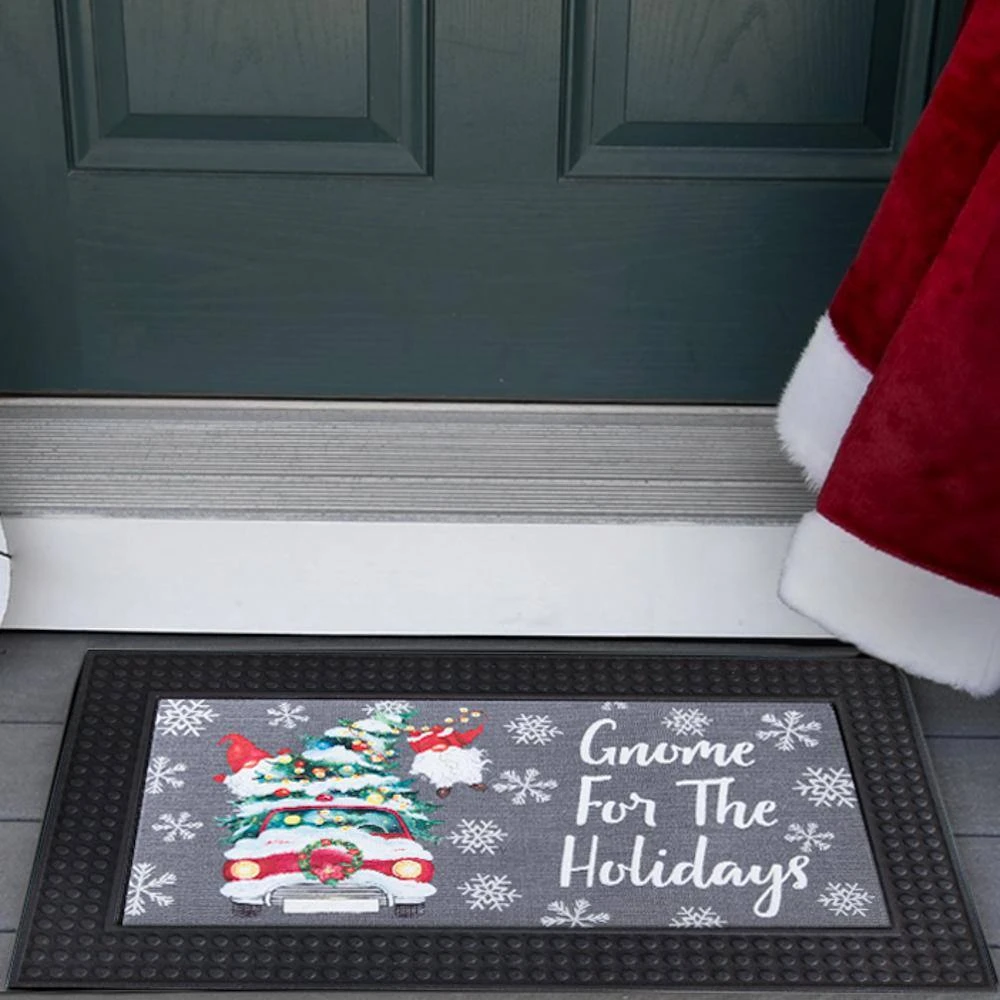 Welcome your family and friends with the Home Accents Holiday 18 in. x 30 in. LED Rubber Door Mat with festive sounds. When activated by touch, LED lights blink while festive sounds or songs play. This exciting doormat is a delightful addition to your holiday decor while remaining easy to clean. Intended for outdoor usage.