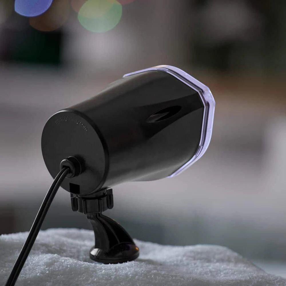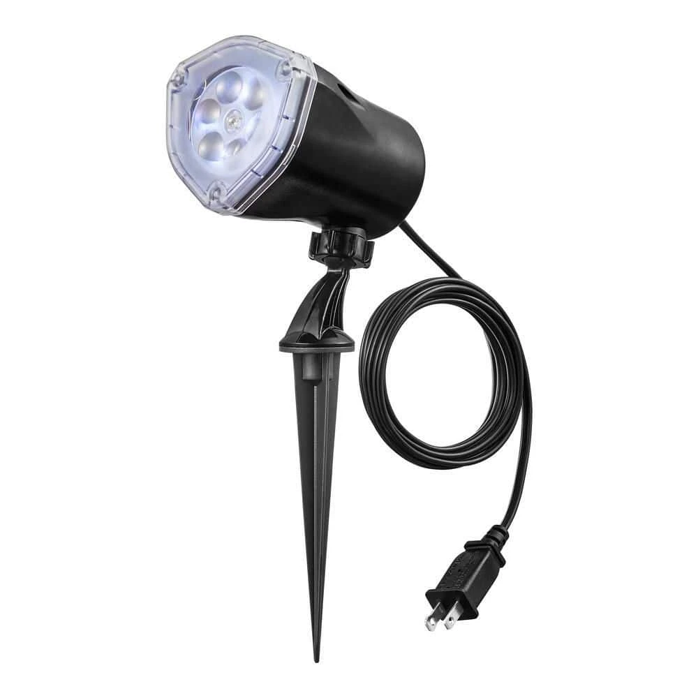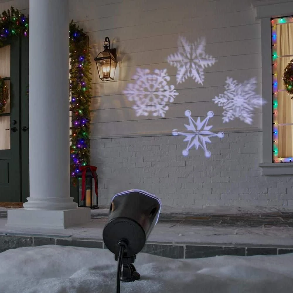 Light up your outdoor holiday decorations with this Home Accents Holiday LED Snowflakes Illusion Projector. Snowflakes are constantly moving, creating the vibrant effect when projecting. The projector casts an even light over flat surfaces, such as the side of your home, for dazzling, large-scale presentation. The spotlight projects up to 15 ft. x 15 ft., which is perfect for creating an eye-catching focal point indoors or outdoors. You can even use in combination with multiple projectors and spotlights for a more dramatic effect.