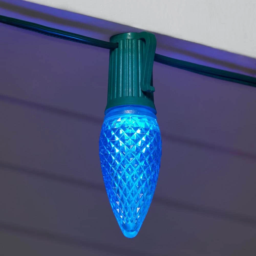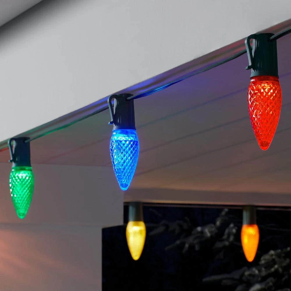- 50 faceted C9 multi-colored LED commercial replacement bulbs for continuous light during the holidays