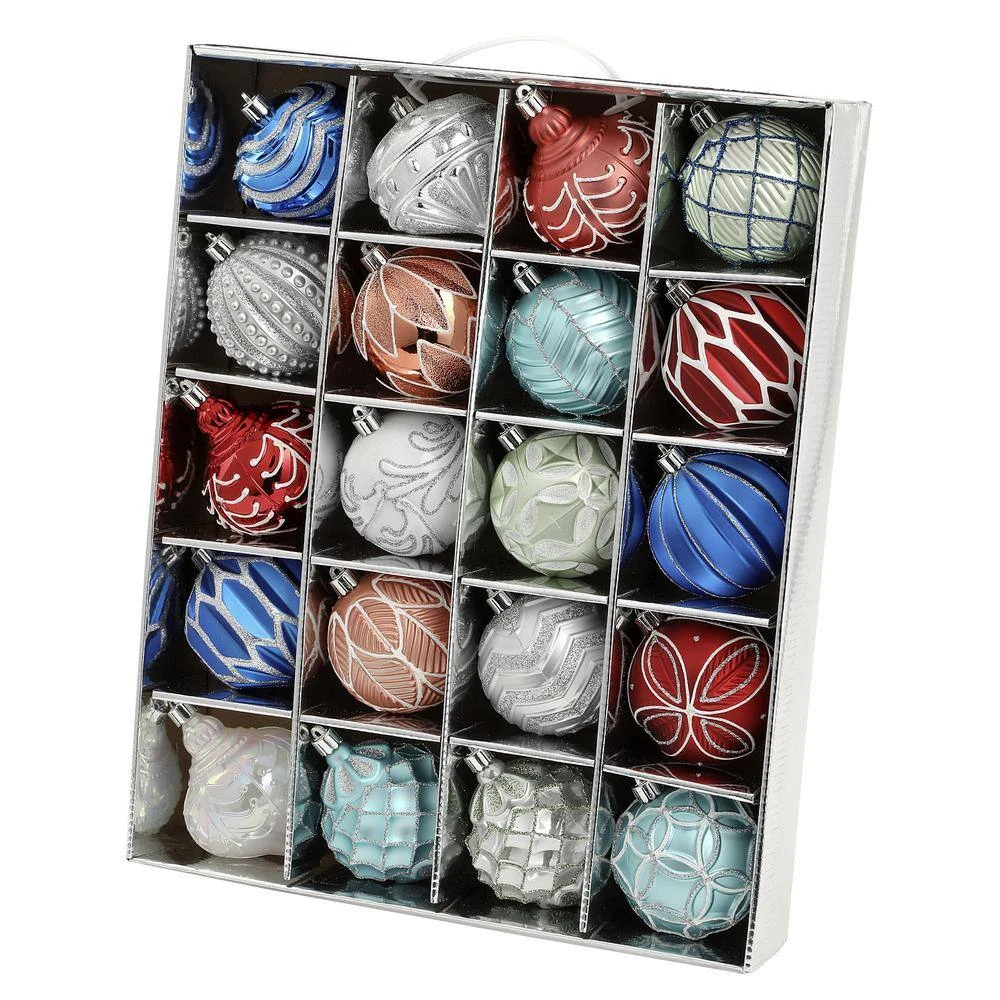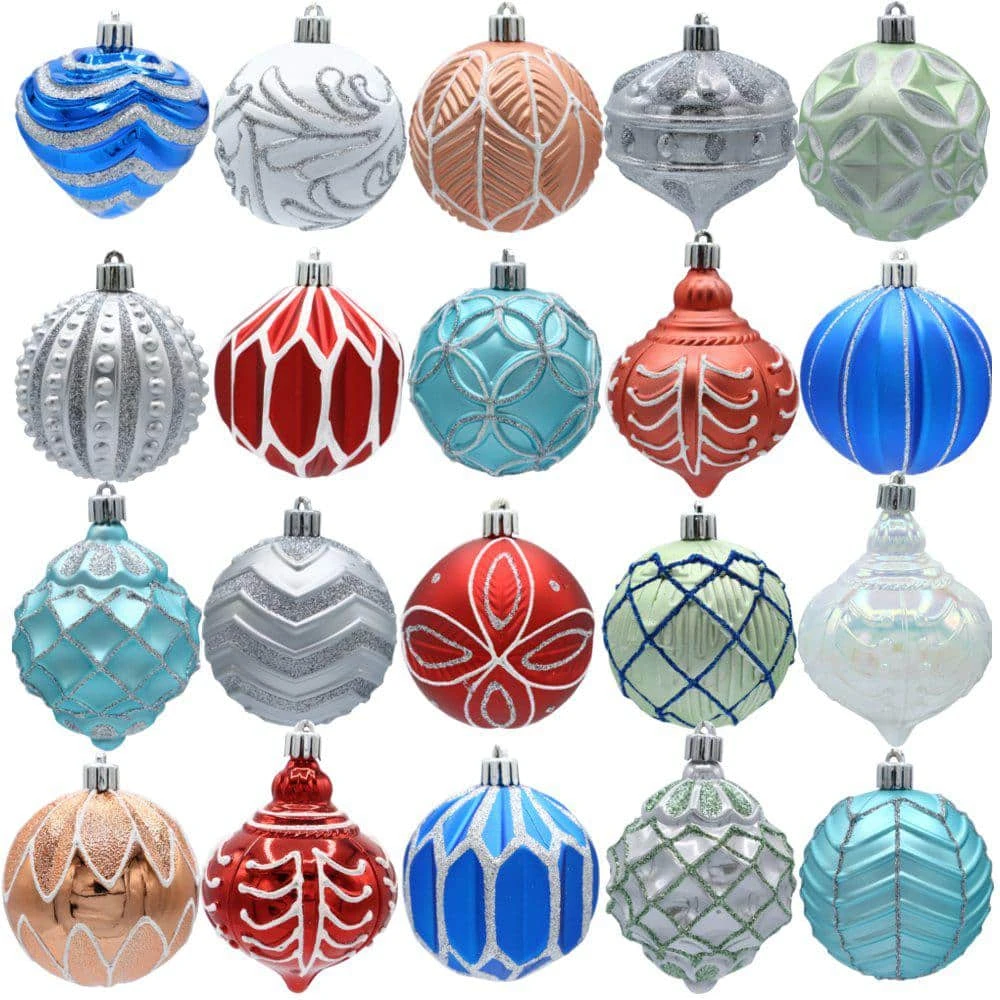 Our Snow Top Dazzle Collection 20-Count Shatter-resistant Christmas Ornament Assortment is a beautiful assortment of embellished shatterproof ornaments. The hand-painted ornaments are very durable and include a variety of shapes and designs with glitter, shiny and matte finishes perfect for decorating your tree, wreath, garland or centerpiece. Make a nice decoration for all Christmas trees, let’s to liven up your seasonal decor with a lot of seasonal sparkle.