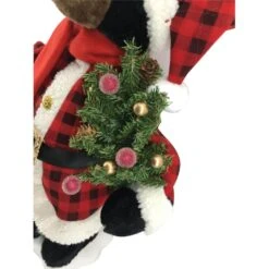 24 In. Christmas Black Bear Figurine With Lighted Lantern And Pine Tree