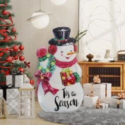 36 In. H Christmas Wooden/Metal Snowman Porch Decor With Floral Wreath (KD)