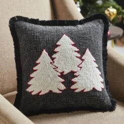 10 In. X 14 In. Creme Embellished Christmas Trees Decorative Throw Pillow