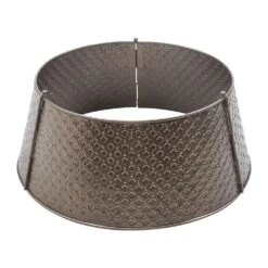 Enhance your holiday tree with the VHC Brands Lattice Metal Christmas Tree Collar in a rich bronze finish. Measuring 8 x 20 in. this beautifully crafted tree collar features an elegant lattice pattern combined with delicate snowflake designs, adding festive charm and texture to your Christmas decor. Its warm bronze tone brings a cozy, vintage-inspired glow that perfectly complements primitive rustic and traditional holiday themes. Made from durable metal, this tree collar is equipped with a convenient hinge pin assembly for easy installation and a secure fit around your tree base. The solid bronze color and classic round shape provide a refined foundation that elevates the overall look of your holiday centerpiece. This accessory offers a stylish alternative to traditional tree skirts, merging functionality with timeless festive appeal. Ideal for use throughout your home-in the bathroom, bedroom, dining room, entryway, kitchen, or living room-this Lattice Metal Christmas Tree Collar brings warmth and holiday spirit to any space. Maintenance is simple with a quick wipe using a soft cloth to maintain its radiant bronze finish year after year. This elegant piece is a perfect addition to create a cohesive and inviting Christmas atmosphere.