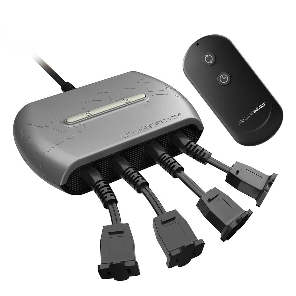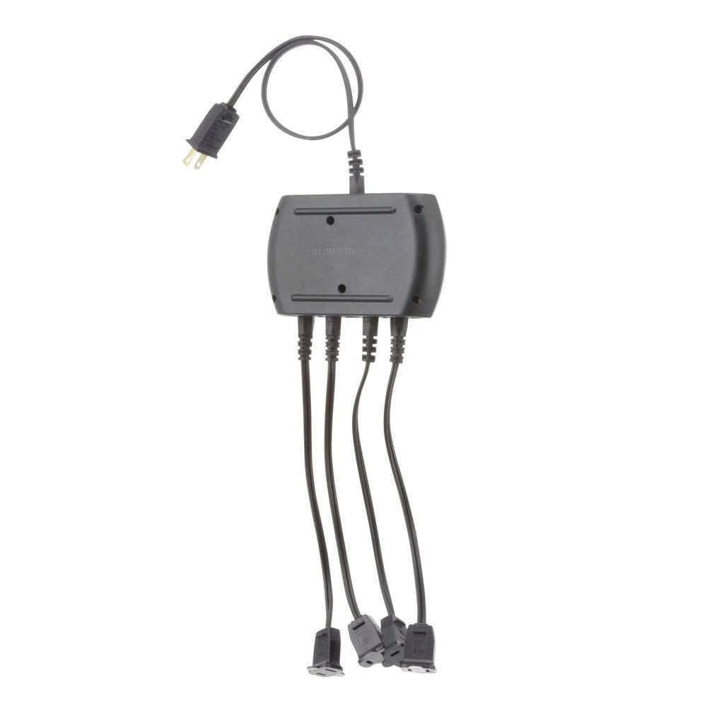 Now you can turn your ordinary LED string lights into a dazzling light show using the ILLUMINATIONS LED Light Wizard. Equipped with 4 ports that can handle up to 2000 lights each, for a total of 8000 lights. Simply connect your string lights to the ports, then use the remote to see the various light effects created. No additional set-up needed. All basic, non-functioning LED string lights are compatible with the Light Wizard.