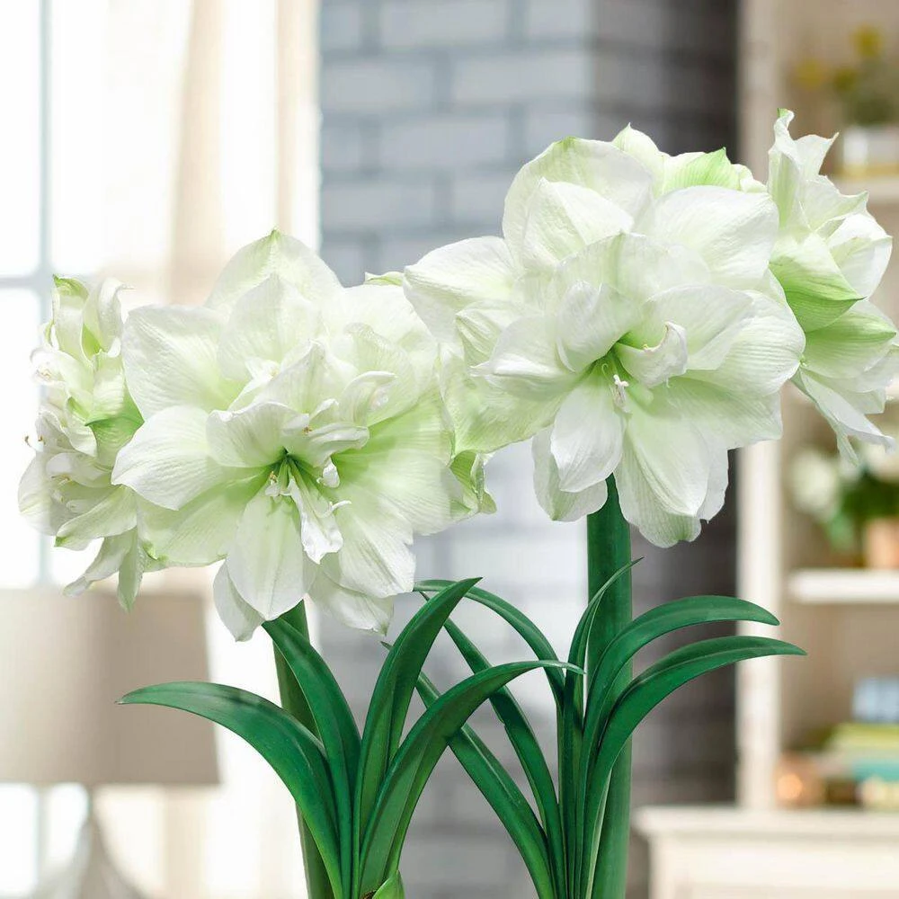 Marilyn Amaryllis features layer upon layer of lightly rippled, white petals accented with a fresh green hue, giving it the rare coloration for which it is known. Native to the rainforests of South America, amaryllis are excellent for forcing indoors to brighten up the shorter, darker days of winter. Large,8-1/2 in. flowers appear 6-8 weeks after planting and can be grown year after year with proper care. Includes detailed blooming instructions for this year and for reblooming in years to come.