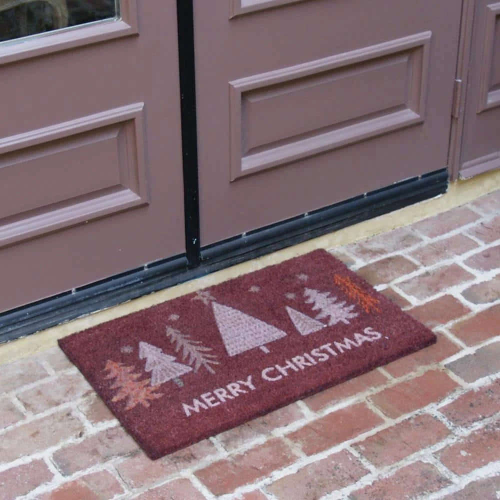 - Spread the holiday cheer to all your houseguests with this vibrant red Christmas door mat made from coir fiber!