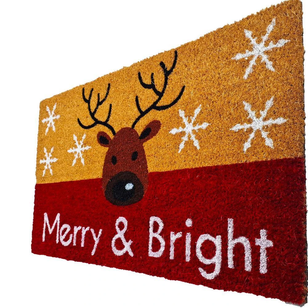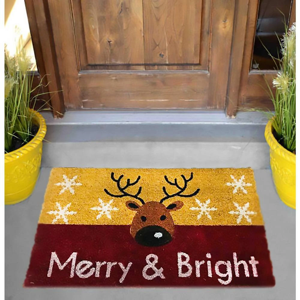 Natural Printed – Merry And Bright Reindeer Multi-colored Indoor/outdoor Doormat 18 In. X 30 In.