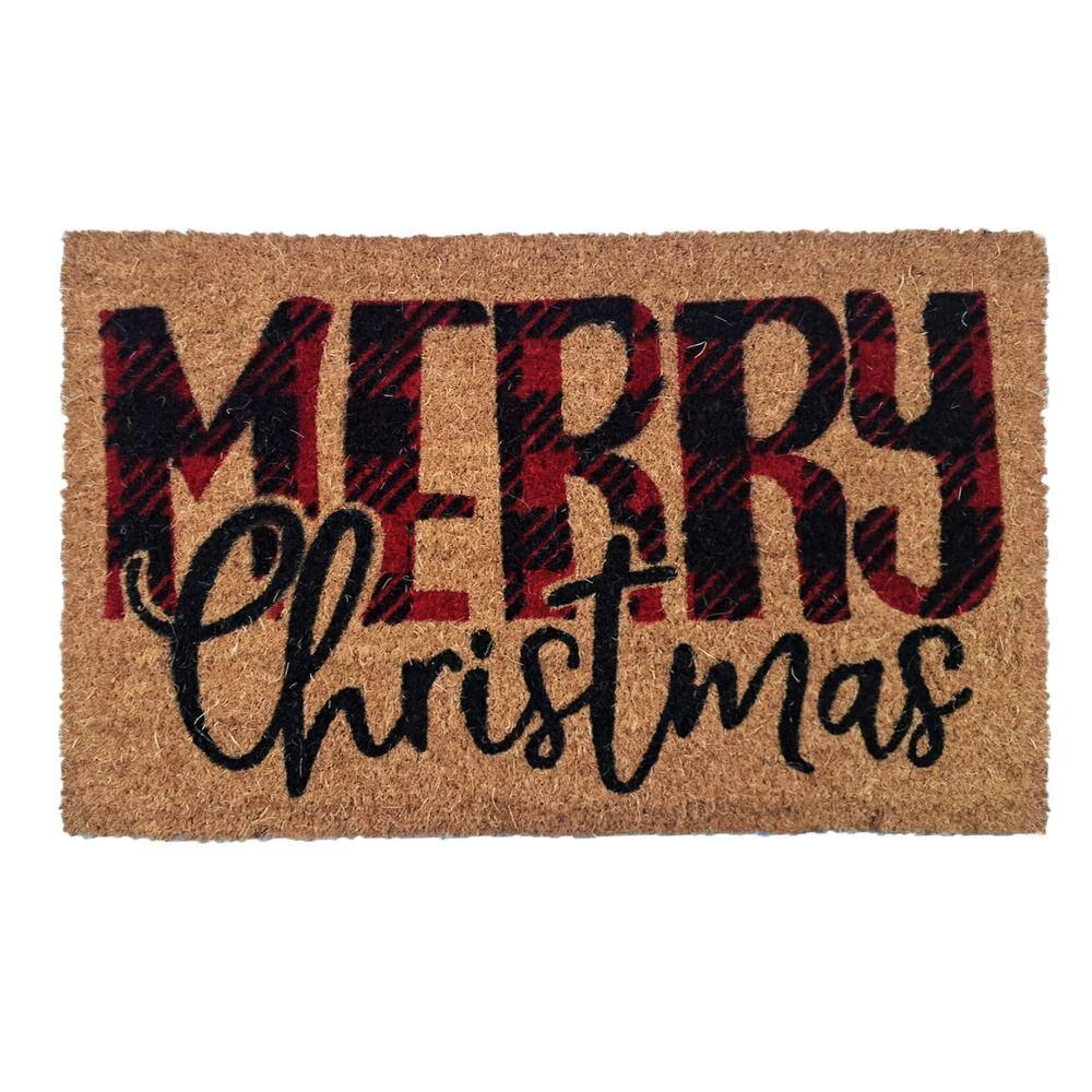 Let your guests know you are happy to see them with this welcoming door mat. Made of natural coir, a durable, fiber that scrapes shoes clean, this mat is vinyl backed for increased durability and to help prevent movement. Designed for both indoor and outdoor use. Perfect for all entryways. Environmentally friendly Recommended for indoor or outdoor use. Please Note: Due to differences in monitors, some rug colors may vary slightly.