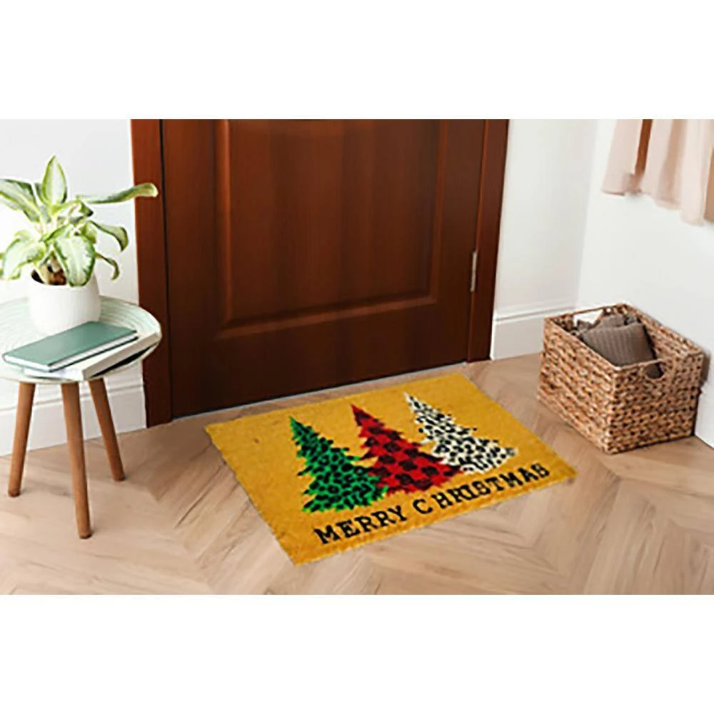 Let your guests know you are happy to see them with this welcoming door mat. Made of natural coir, a durable, fiber that scrapes shoes clean, this mat is vinyl backed for increased durability and to help prevent movement. Designed for both indoor and outdoor use. Perfect for all entryways. Environmentally friendly Recommended for indoor or outdoor use. Please Note: Due to differences in monitors, some rug colors may vary slightly.