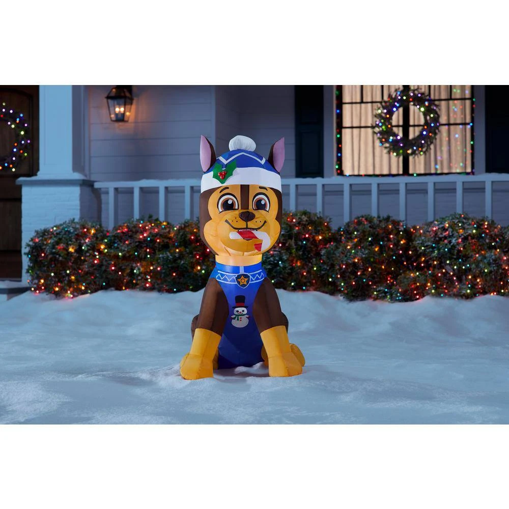Put Chase on the case in search of Christmas cheer with this Airblown PAW Patrol Chase inflatable. A happy holiday sweater keeps this precious pup ready to welcome friends and family to your home, and the energy-efficient LEDs light up your outdoor display throughout the night. A self-inflating design allows for simple setup. Use the included ground stakes and tethers to keep this Airblown PAW Patrol Chase inflatable securely positioned on your lawn throughout the season.