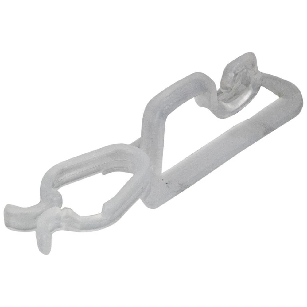 Make decorating a breeze instead of a chore while leaving time for you to enjoy all the holiday fun. Discreetly hang your holiday decor with these clear gutter and shingle clips. Light strings can attach to the clip through wire guides to securely hold lights without forcing or twisting. Features: Plastic gutter and shingle clip. Works with most C7 C9 mini icicle curtain and LED light sets. Can also be used for garland or other decorations. Snaps on gutters or slides under shingles. Recommended for indoor or outdoor use. Made of weatherproof and reusable material. Not intended for permanent installation; For seasonal use only. Hooks are designed to fit all standard gutters and shingles and work on most roofs. Dimensions: 3.25 in. H x 0.75 in. W x .80 in. D. Material(s): plastic. Note: Set includes 100 clips.