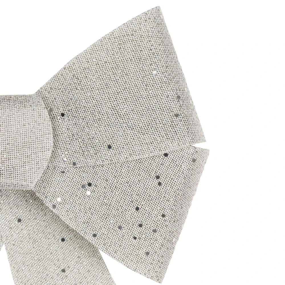 - LED lighted silver sparkly burlap bow hanging Christmas decoration